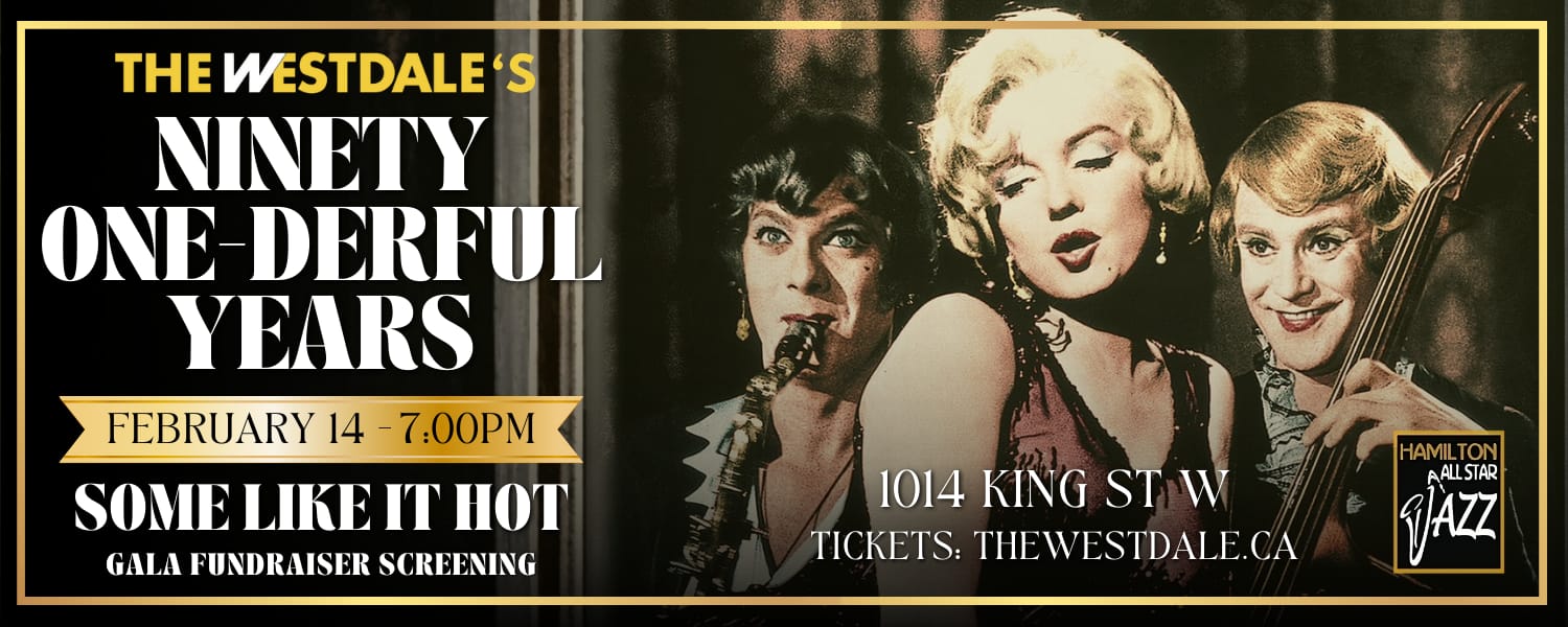 Celebrate 91 years of The Westdale on February 14th with a special evening featuring live entertainment by the Hamilton All-Star Jazz Band, drinks and hors d’oeuvres, and an exciting live auction—all leading up to a screening of Some Like It Hot!