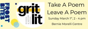 Take a Poem, Leave a Poem: gritLIT - Bernie Morelli Centre - Sun 1st, 2 pm