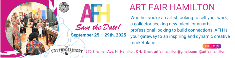 Art Fair Hamilton - Cotton Factory - Fri 26th, 7 pm, Sat 27th & Sun 28th, 1 pm